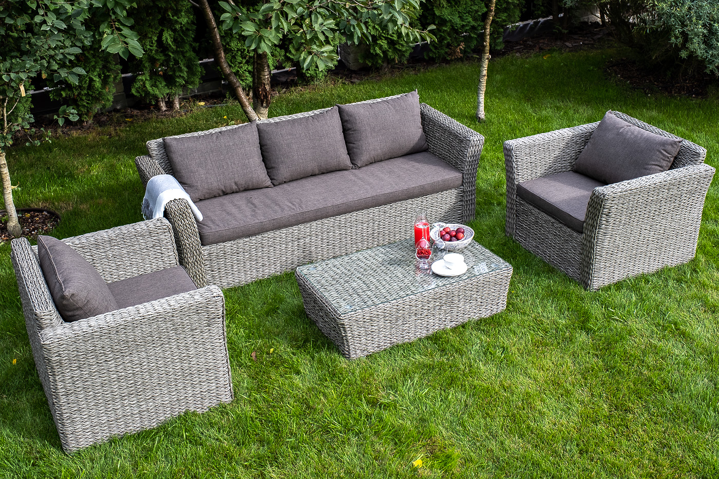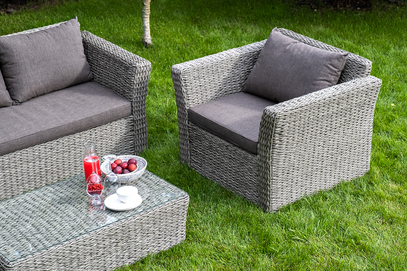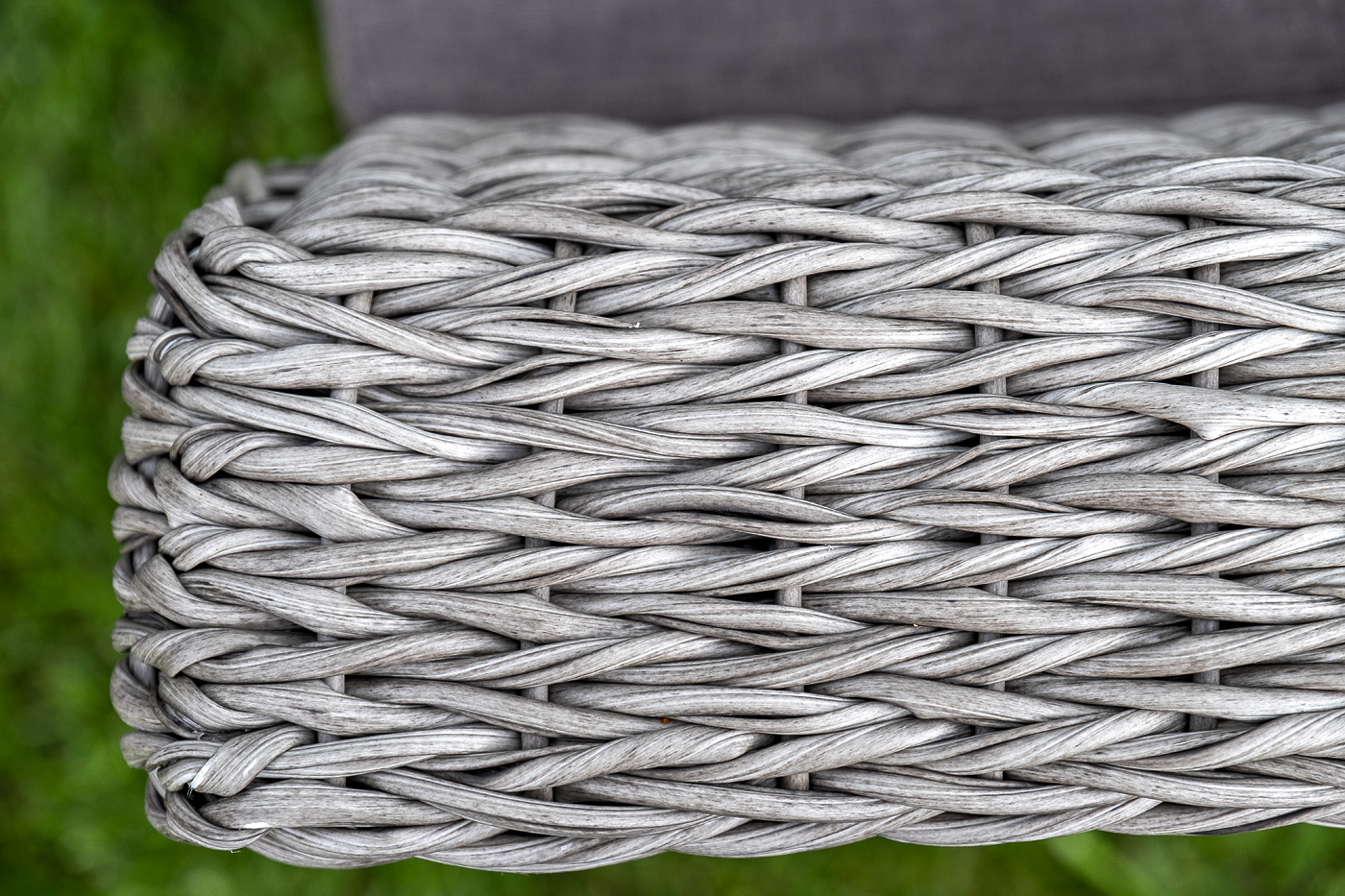 Кресло из искусственного ротанга «Капучино» серого цвета, прекрасно подходит для обустройства веранды, а относительно небольшой вес, который составляет 21,5 кг, увеличивает мобильность данной модели. Плетение используется вида «гиацинт».
