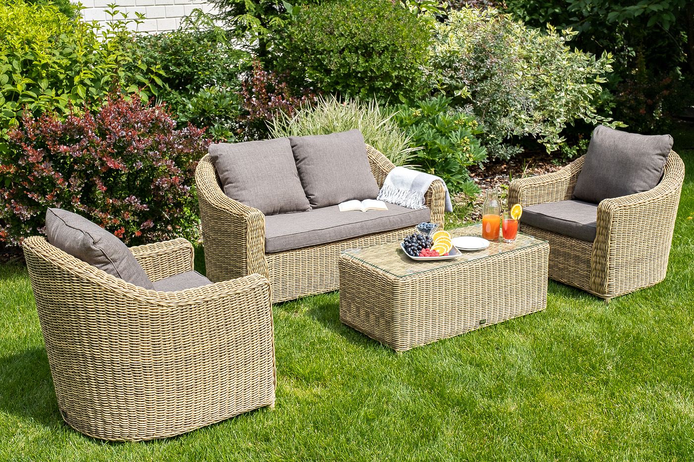 У кресла есть мягкие подушки, выполненые в серо-коричневом цвете. Они сделаны из прочного полиэстера с плотностью 230гр/м2. Ткань имеет влагоотталкивающую пропитку, которая защищает ее от сильного намокания.