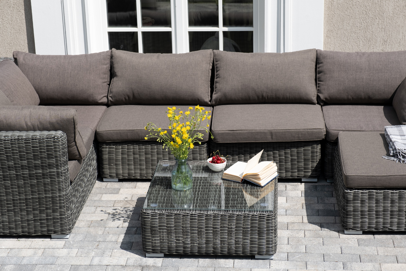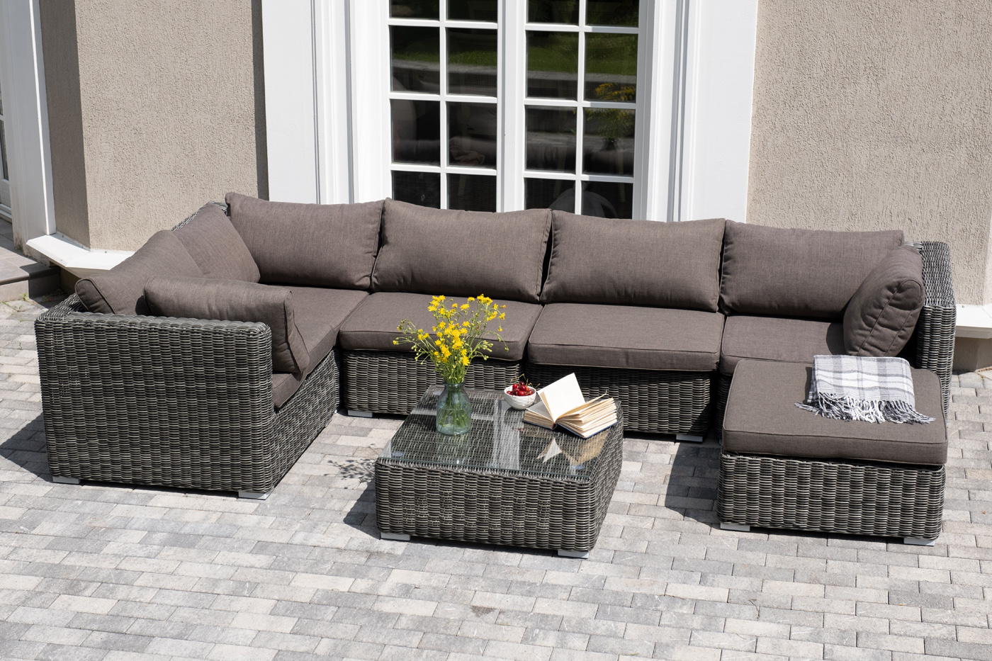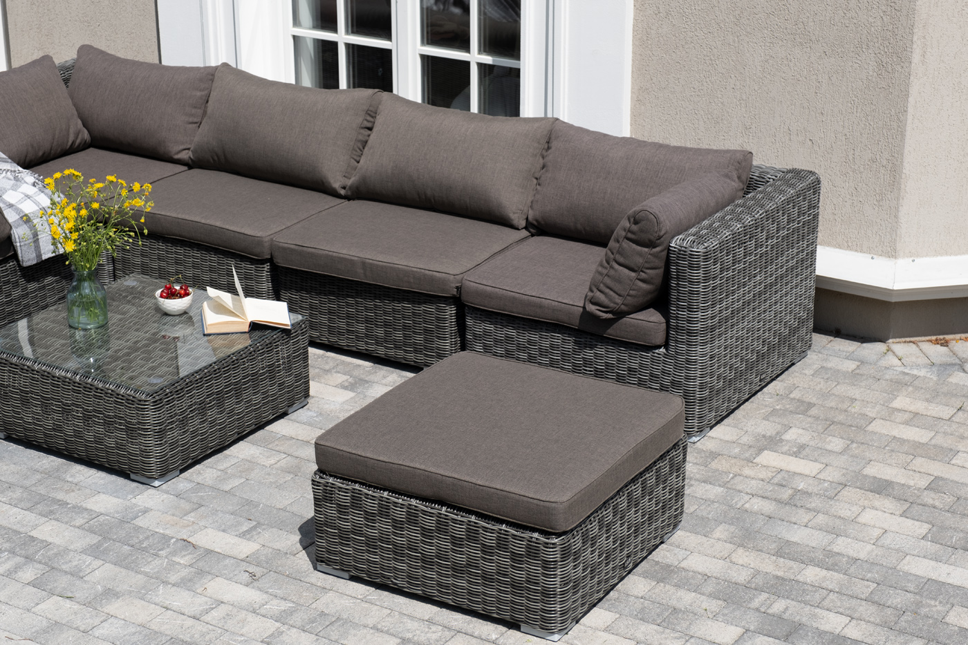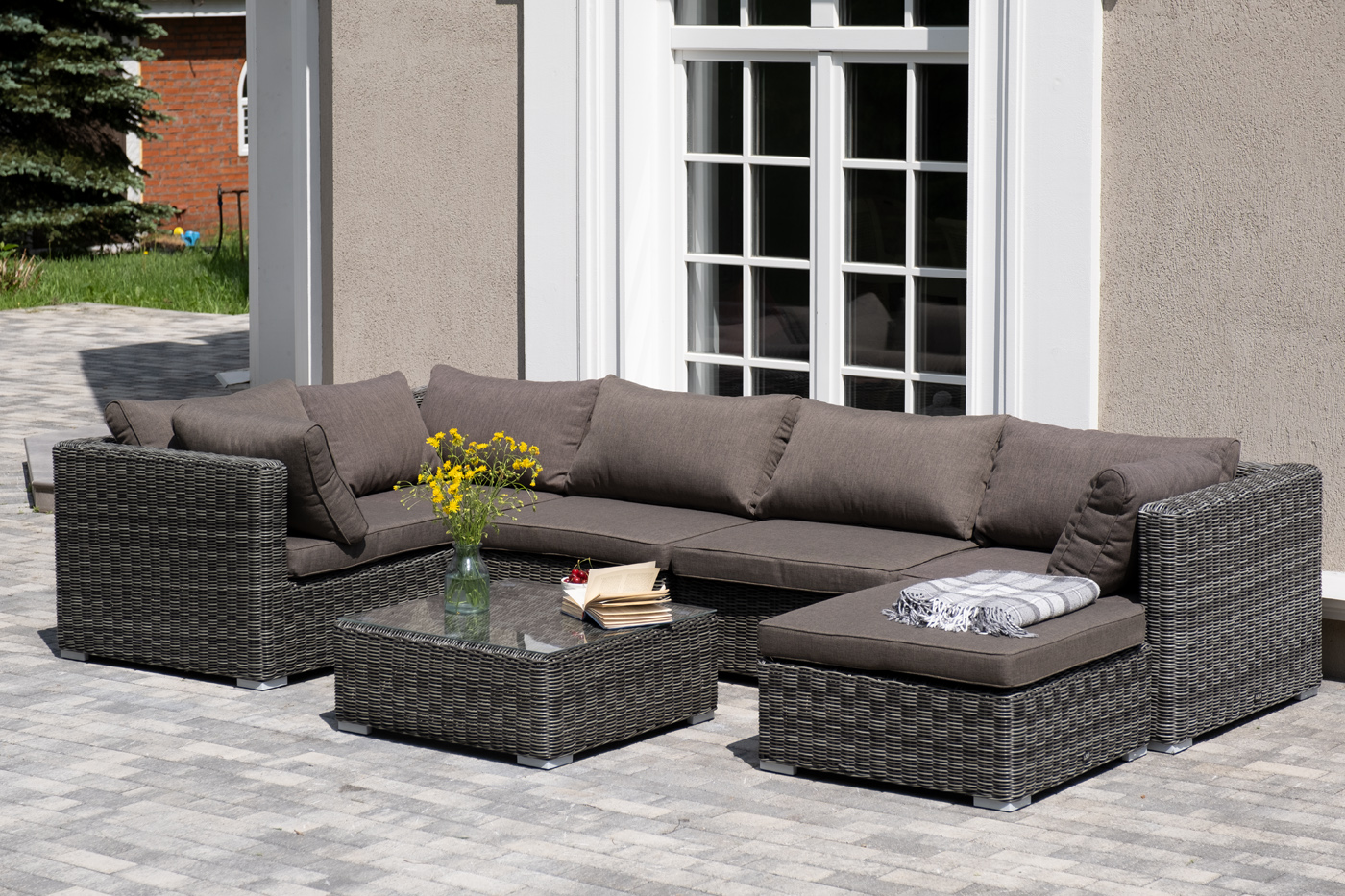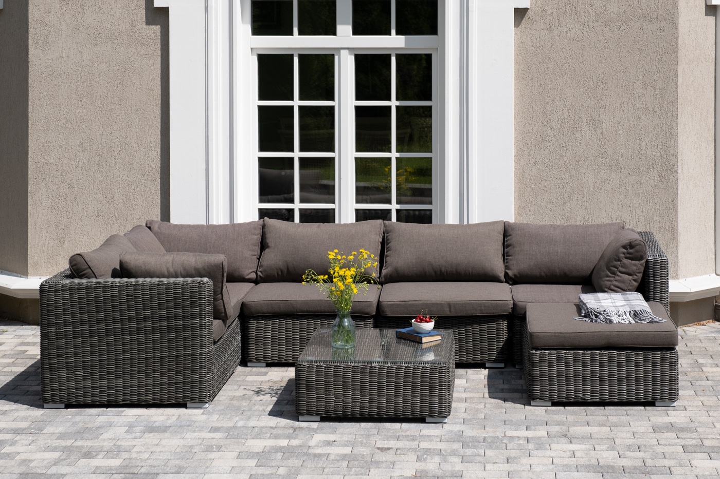 Лаунж-зона из искусственного ротанга «Лунго» идеально подходит для создания места отдыха с возможностью трансформирования. За прочность конструкции отвечает каркас из алюминия.