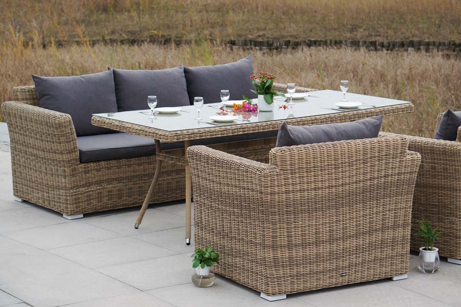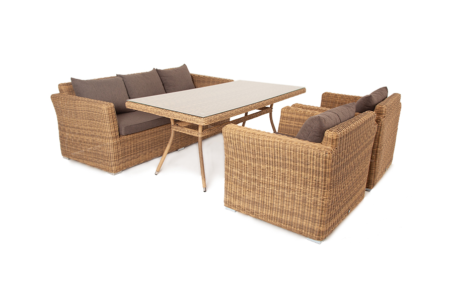 Обеденная группа «Моккачино» позволит оформить обеденную зону даже на открытом пространстве загородного участка.